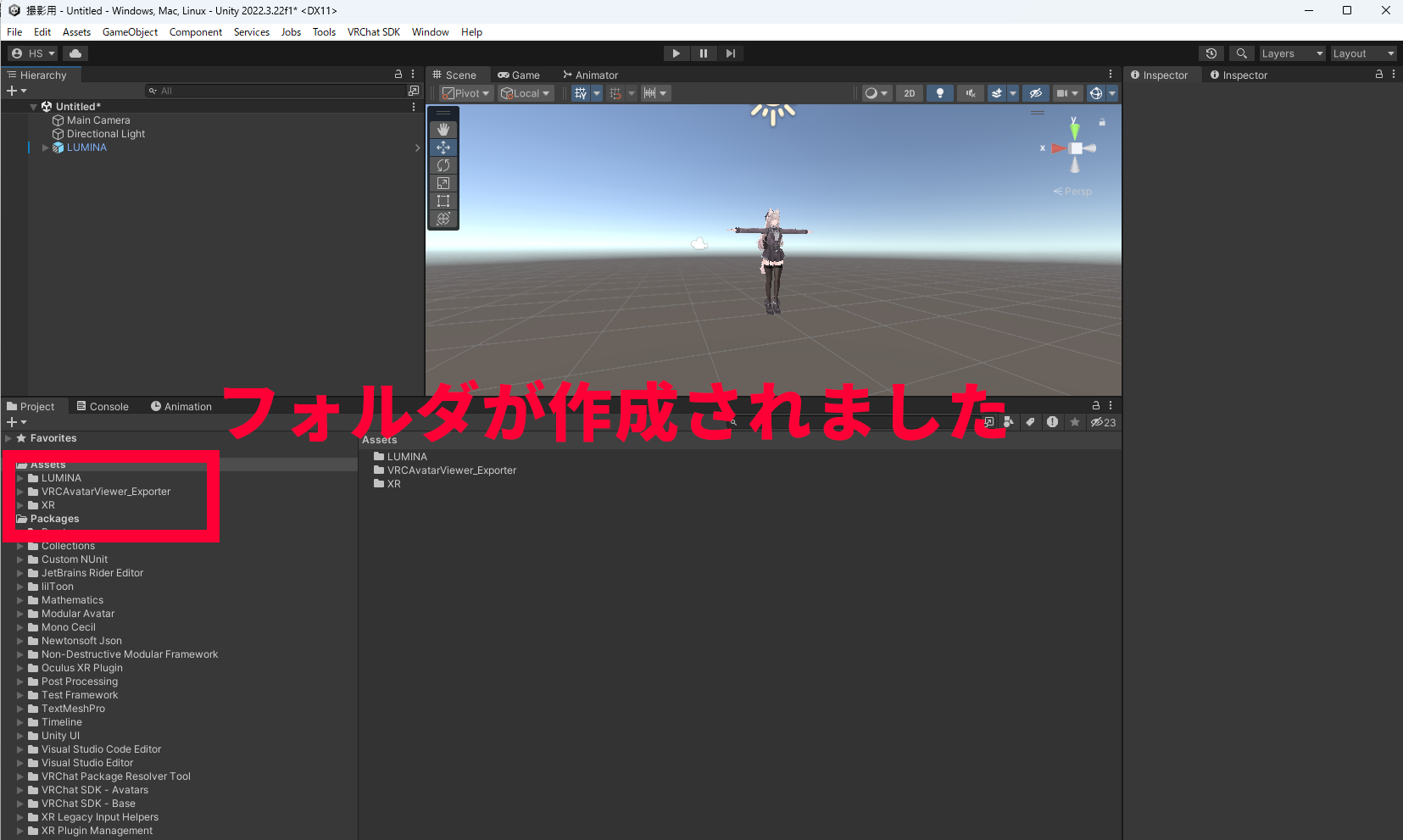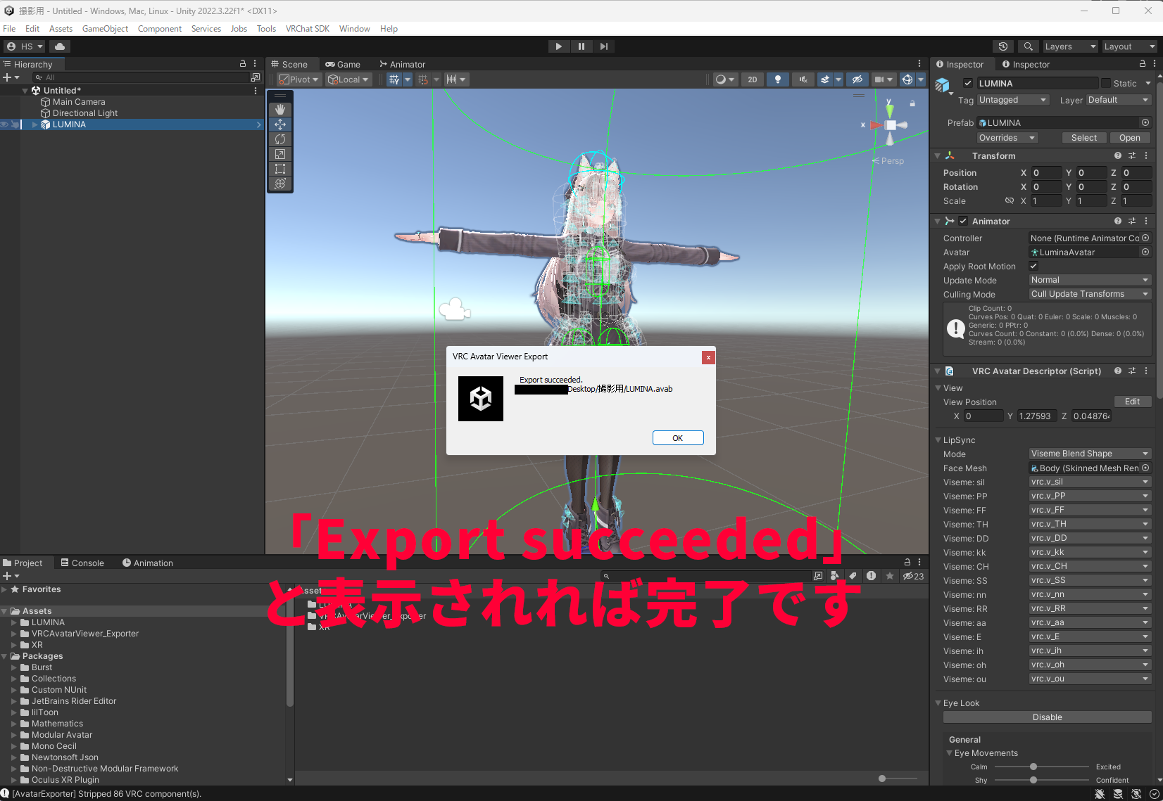 Assets/VRCAvatarViewer_Exporterフォルダが作成されたら導入完了