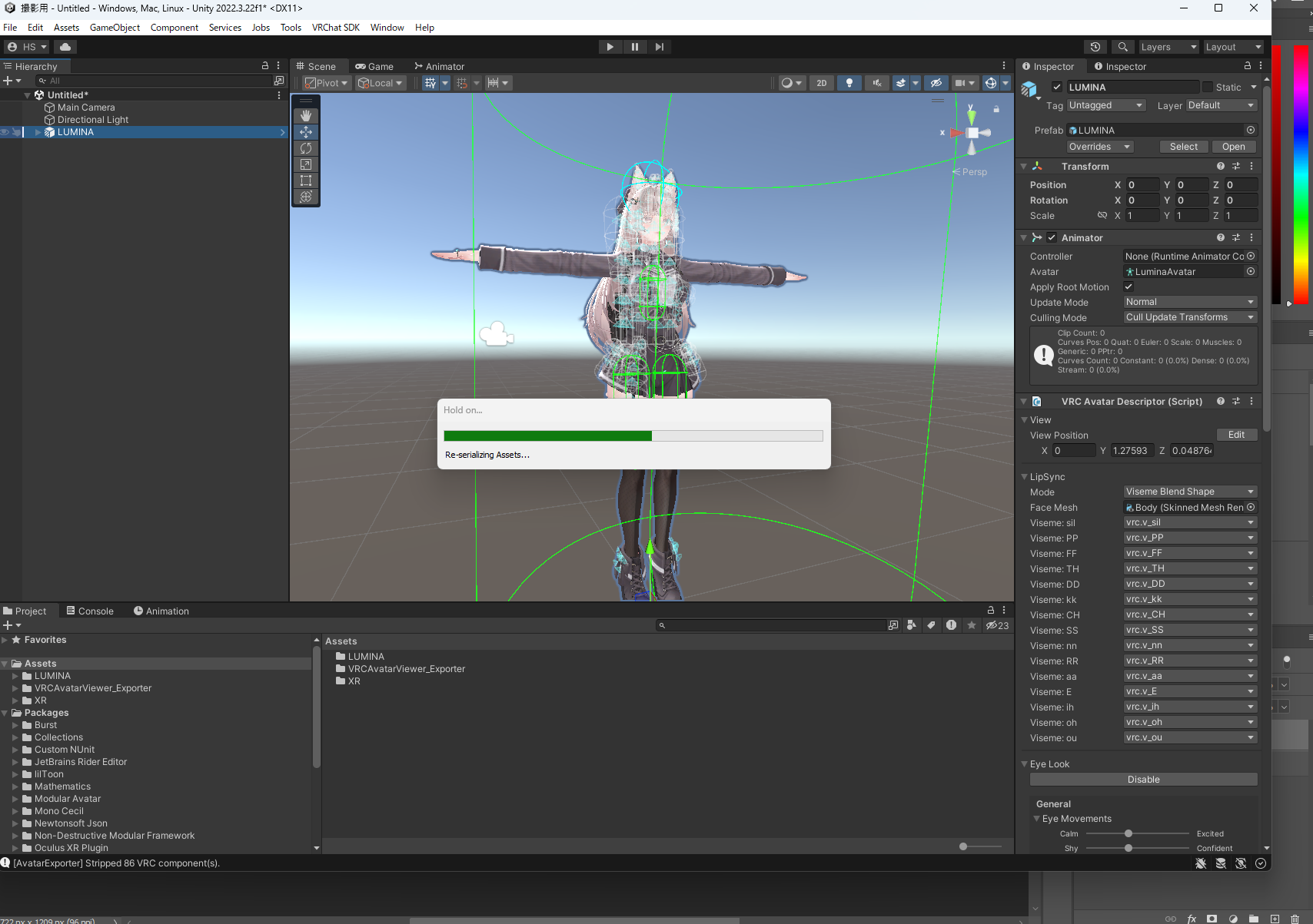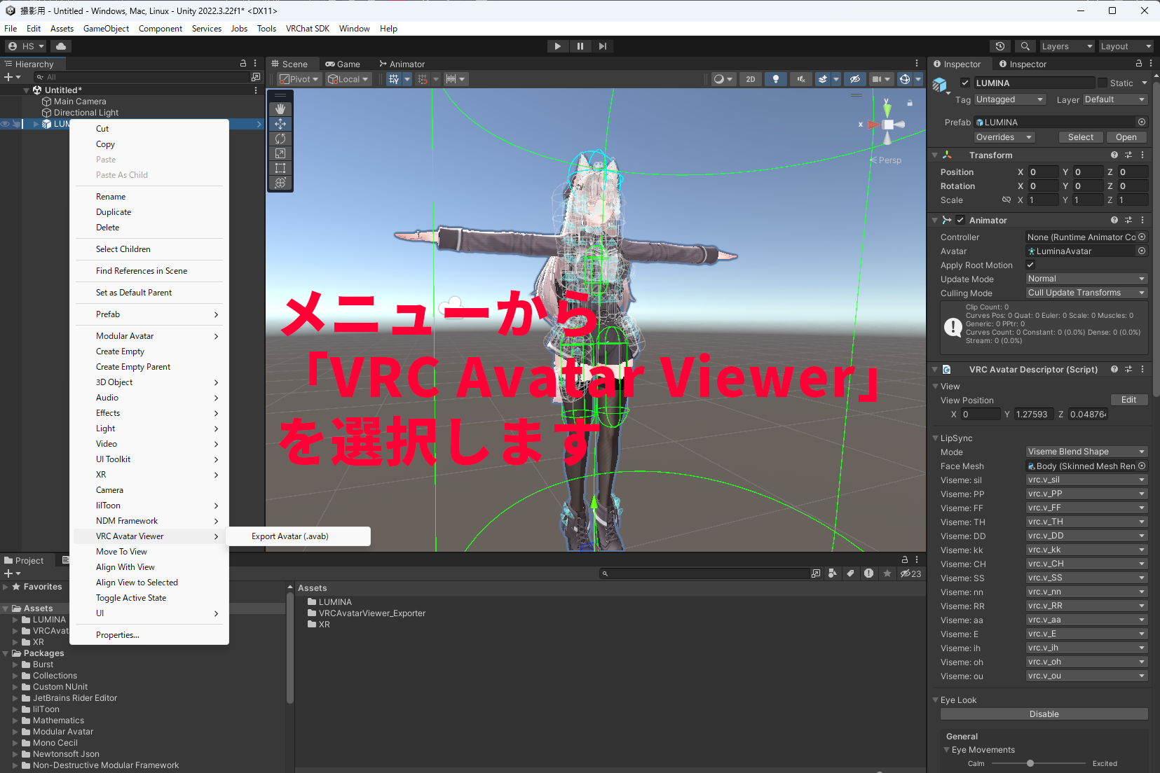 - VRChatのアバタープロジェクトをUnityで開く