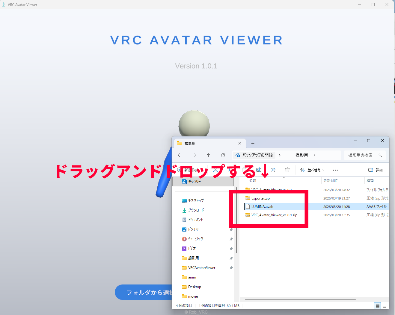 .avabファイルをビューアーのウィンドウに直接ドラッグ&ドロップする- アバターが表示される